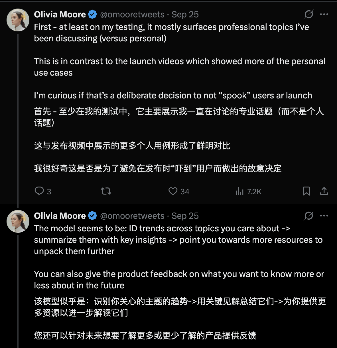 首先要Pulse能惊艳到你,需要一个很好的人物画像来了解你,而ChatGPT天然的聊天窗口,根据你们的历史消息,能够比较好的了解到你的喜好,你的苦恼,你的履历,你的朋友,理论上一切你和他分享的内容